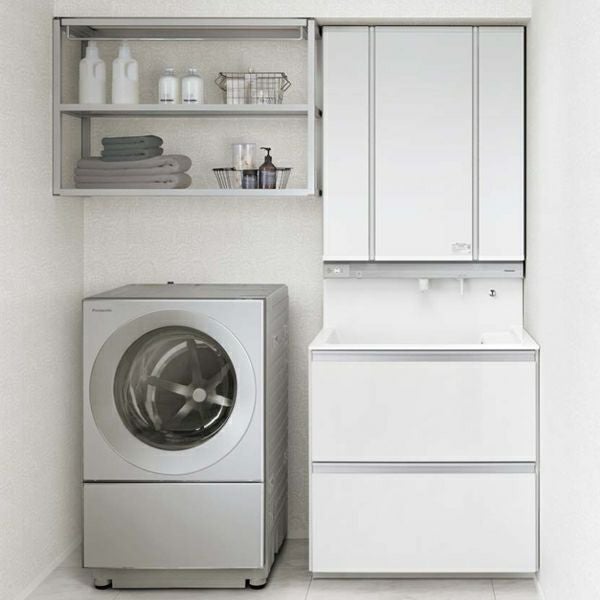 | 品番 | ①本体 750パノラマスライドタイプ 抗菌加工:GQD75EVSXLW ②手動水栓(3面鏡用):XGQD75EA3N ③美ルックツインラインLED3面鏡 抗菌加工:GQD075EWEBT |