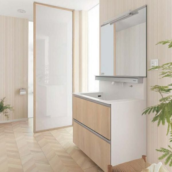 | 品番 | ①本体 900パノラマスライドタイプ 抗菌加工:GQD90EVSXXN ②手動水栓(1面鏡用):XGQD90EA1N ③1面鏡(照明なし):GQD090EYSBT ④LED照明:GQD10D2M |