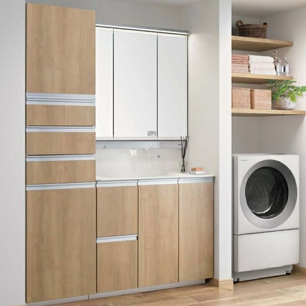 | 品番 | ①本体 900引出しタイプ 抗菌加工:GQD90EVHXXK ②手動水栓(3面鏡用):XGQD90EA3N ③スリムLED3面鏡 抗菌加工:GQD090EWDBT |