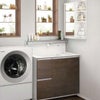 正面に窓がある洗面室でも、ミラーが使えて収納スペースも確保できます。