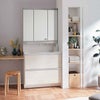 ミラー内のトレイが大きくなって収納力アップ。美容家電やメイク用品をたっぷりしまえます。