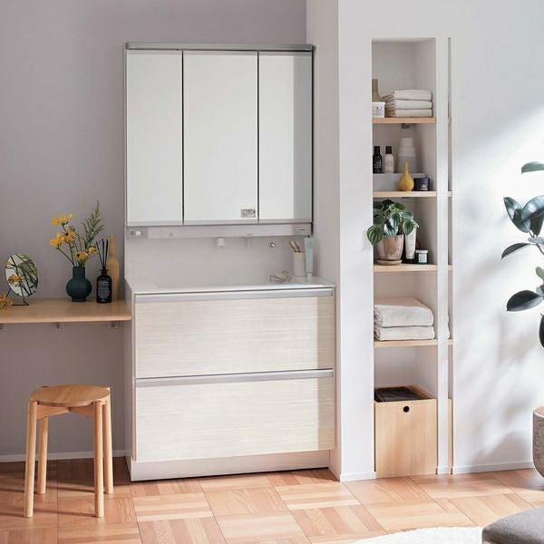 | 品番 | ①本体 900パノラマスライドタイプ 抗菌加工:GQD90EVSXVW ②手動水栓(3面鏡用):XGQD90EA3N ③スリムLED3面鏡 抗菌加工:GQD090EWDBT |