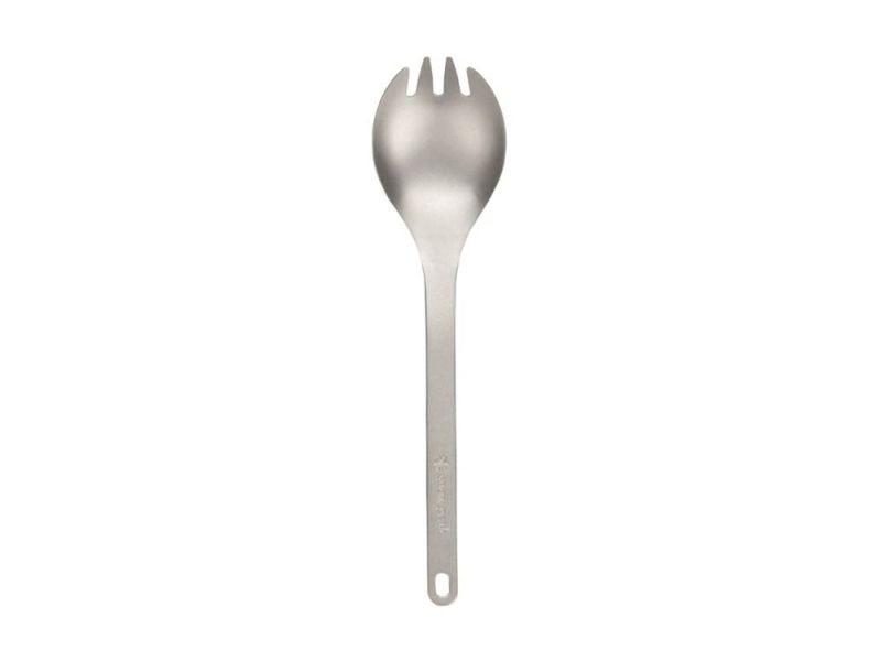 フォークとスプーンを兼用できるチタン製の超軽量カトラリー。ハンドルには何かと役に立つ穴を開けています。ソロアクティブはもちろんキッズにも最適です。