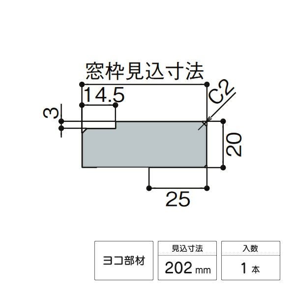 木造用定尺材 窓枠 (ノンケーシング) ねじ付アングル付用 (アングルしゃくり寸法3mm) ヨコ部材 見込み202mm 長さ4000mm 1本入 ◆品番: NZAY097 WA-0030-MBJG AC-0030-MBJG AD-0030-MBJG NZAM097 NZAD097 RA-0030-MBJG VM-0030-MBJG