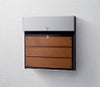 サインポストと宅配ボックスの2つの機能を、スタイリッシュなデザインに納めました[幅385(本体)・390(前面パネル)×奥行455×高さ385]