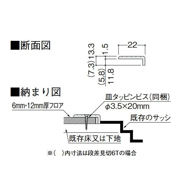 他の画像を見る 大建工業 リモデル造作材 床見切6T (化粧シート仕様) (6mm厚フロアー専用) 段差タイプ 長さ 1950mm 1本入 MT7103-73 定価 ¥ 9,900 ケンサポ価格 ¥ 9,735 税込 詳細を見る お気に入りに登録する