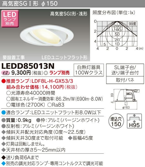 東芝 LEDダウンライト 高気密SGI形(ランプ別売) LEDD85013N