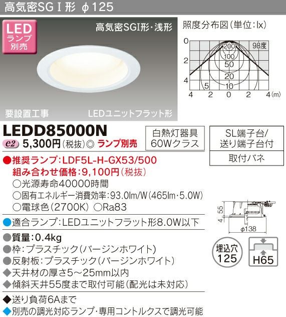 東芝 LEDダウンライト 高気密SGI形(ランプ別売) LEDD85000N