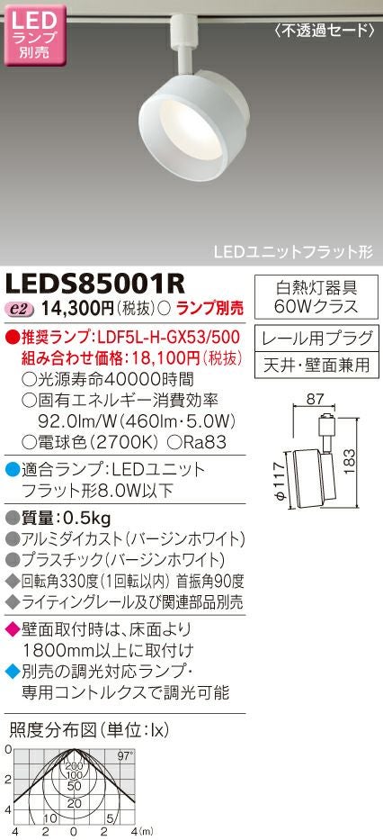 東芝 LEDスポットライト レールタイプ(ランプ別売) LEDS85000R