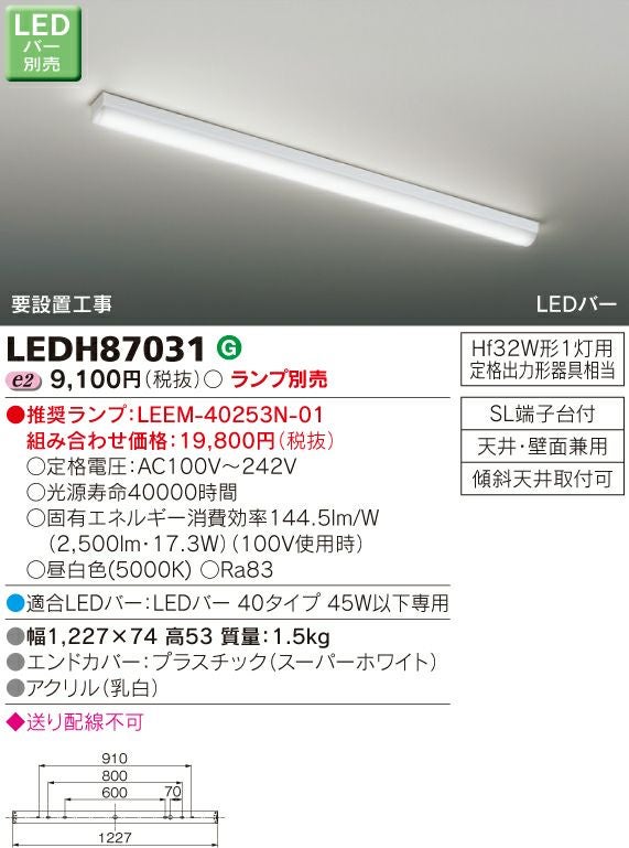 東芝 LEDキッチンライト シーリングライト(ランプ別売) LEDH87031
