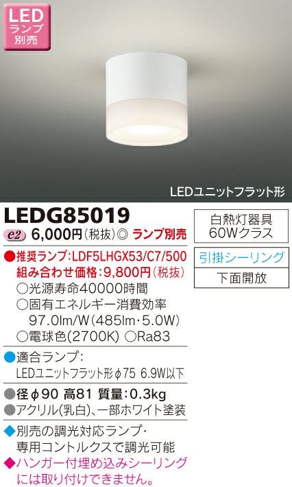 東芝 LEDキッチンライト 小形シーリングライト(ランプ別売) LEDG85019