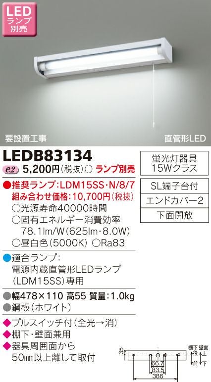 東芝 LEDキッチンライト 流し元灯(ランプ別売) LEDB83134